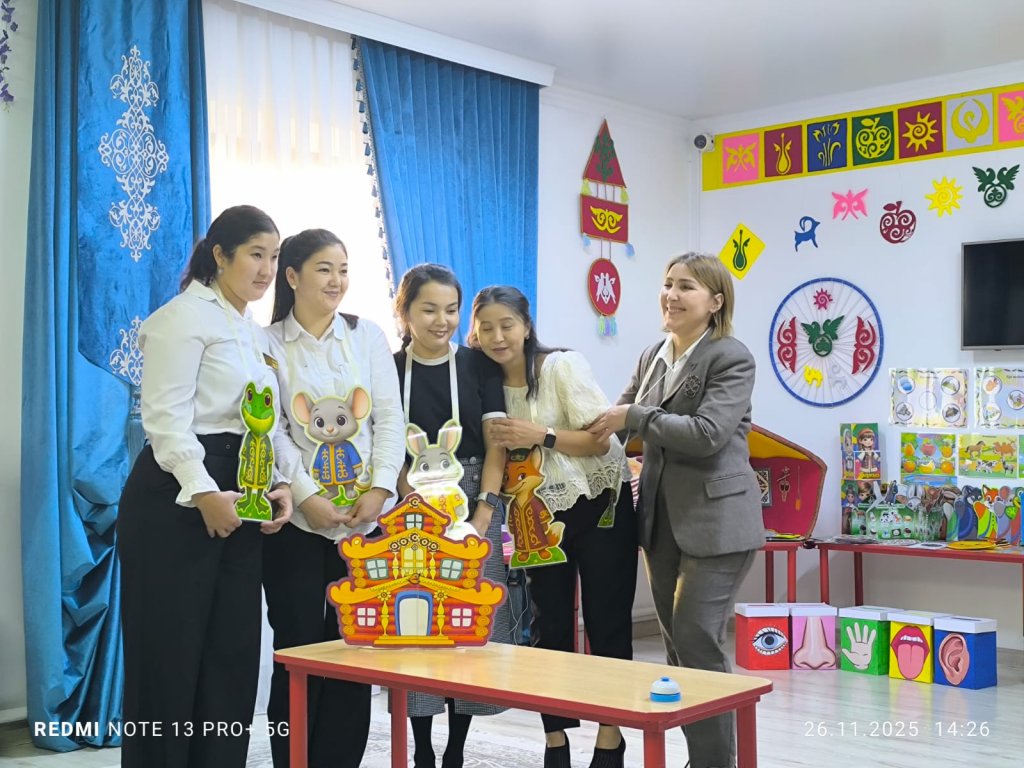 Біздің балабақшамызда 2025-2026 оқу жылына арналған «Ақмола облысы білім басқармасының Қосшы қаласы бойынша білім бөлімінің жанындағы «Алтын дән» балабақшасы» МКҚК базасында құрылған құзыреттілік орталығының жұмыс жоспары бойынша "Мектепке дейінгі жастағы балалардың тілін дамытудағы ойындардың рөлі" атты семинар-практикум ұйымдастырылды. Білім бөлімнің әдіскері Мейрманова Гаухар Кабжаппаровна және 10 балабақшадан жас тәрбиешілер келді. Бұл семинар тәрбиешілерге тәжірибе алмасы мақсатында өткізілді. Біздің тәрбиешілер келген қонақтарға көптеген балалардың жасын сай әр түрлі ойындар көрсетті, әріптестер жоғары деңгейде бағалады. Білім бөлімнің әдіскері семинар-практикумды жоғары деңгейде ұйымдастырылғаның айта кетті.