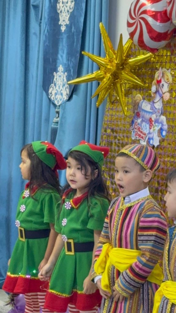 Жылда балаларға балабақша қызметкерлері керемет ертеңгіліктерді ұйымдастырады. Әр түрлі көңілді кейпкерлер келеді, ойындар ойнатылады, барлық балалар ән айтып, би билейді, Аяз атаға жатталаурын айтады. Әрине Аяз ата мен Ақшақар барлық бүлдірішіндерге сыйлықтар береді!